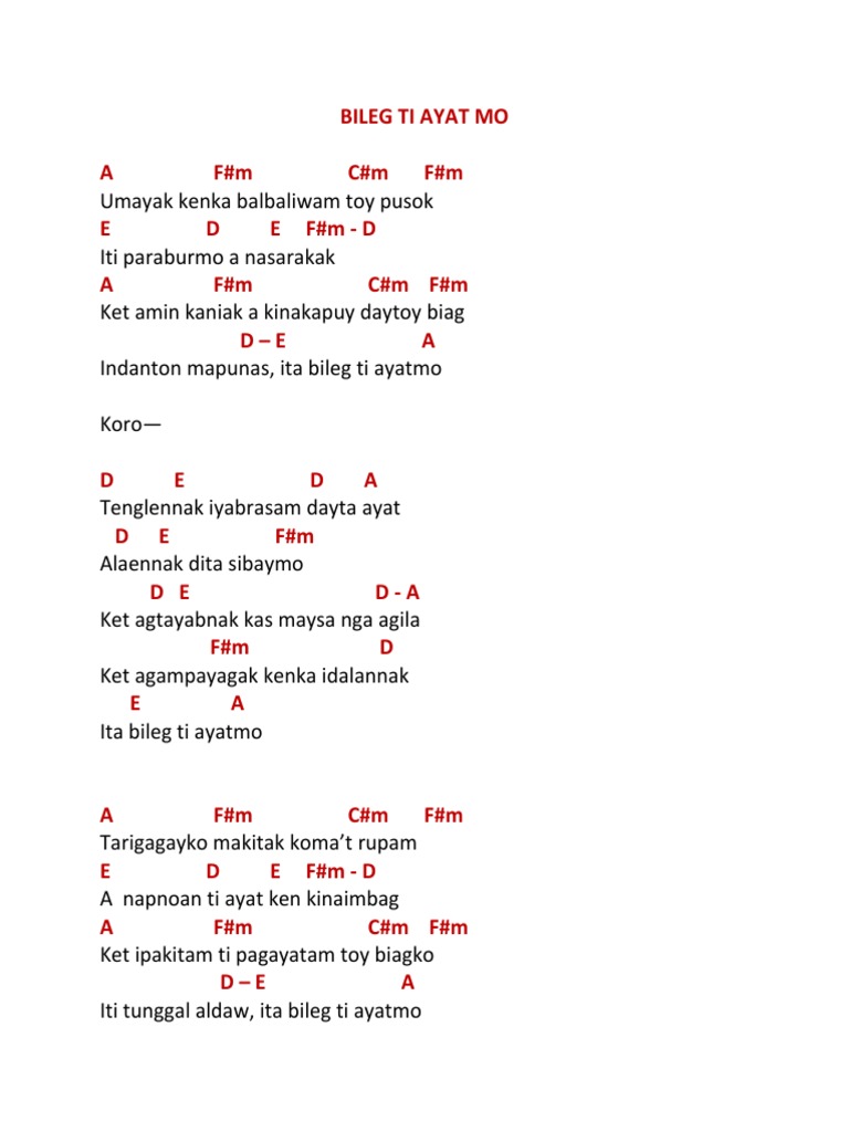 9 talking about this. Chords and Lyrics to Bileg Ti Ayat Mo an Ilocano rendition of an English praise and worship song. 13122011 i made a lyrics for this Song.