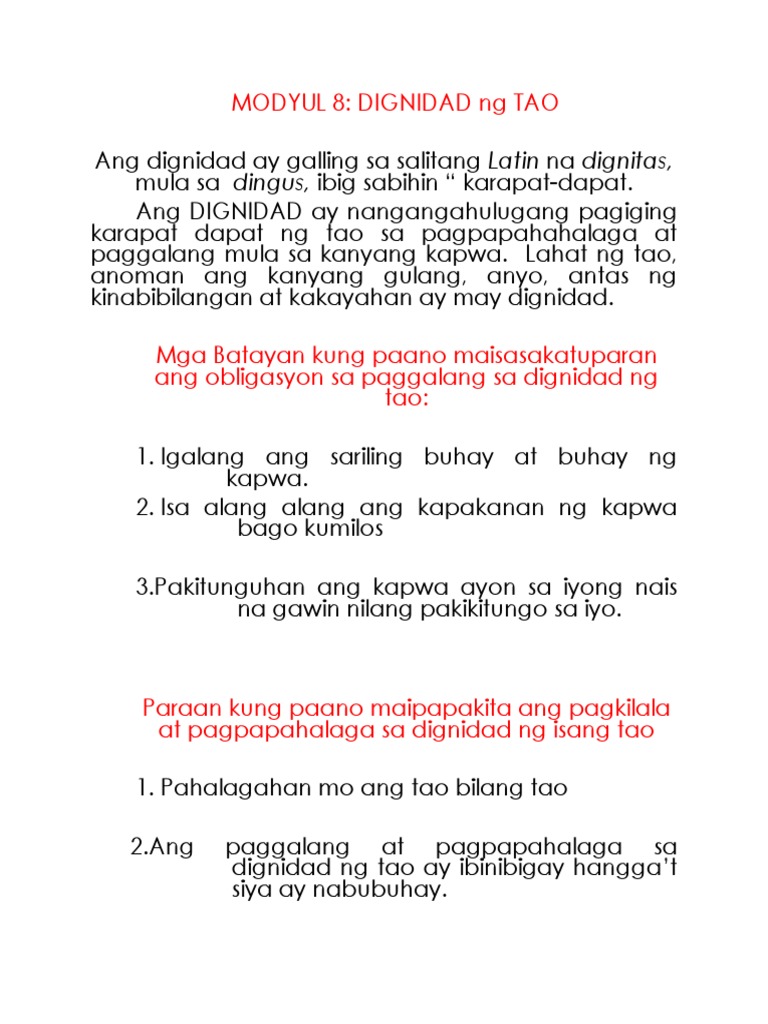 Esp 7 Modyul 8 Ang Dignidad Ng Tao