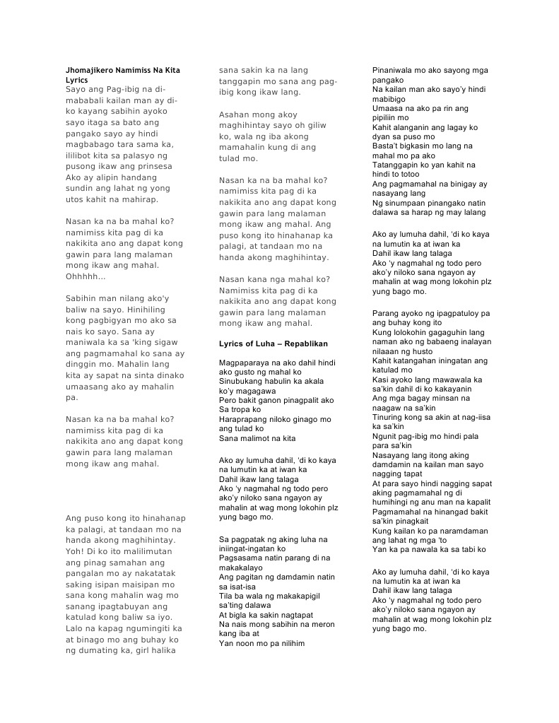 Ko na nga ba Kapway mayroong pag-ibig. Atayo ako sa aming gate Nag-aabang na sa kaniya sana di pa ako late Kumakabog ang aking dibdib ang lakas ng aking faith Na ako ay kaniyang ngitian kasing-taming ng chocolate Curly ang kaniyang buhok tawag sa kaniya ay si kulot Isang poging lalaki happiness sakin ang dulot mga tingin niyang malapot puso ko. Ang Pag-Ibig Ko Na Ayaw Mo Lyrics.