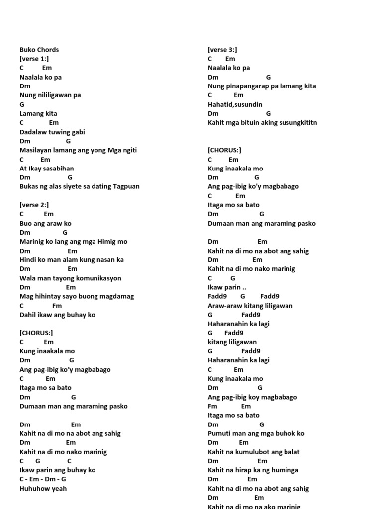 Follow KUNG INAAKALA MO Tag. A group project for comsci. Kung inaakala mo Ang pag-ibig ko y magbabago Itaga mo sa bato Dumaan man ang maraming pasko Kahit na di mo na abot ang sahig Kahit na di mo na ko marinig Ikaw pa rin ang buhay ko Verse.